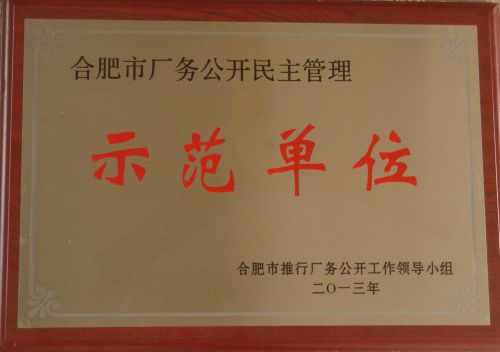 合肥市廠務(wù)公開民主管理示范單位標(biāo)牌