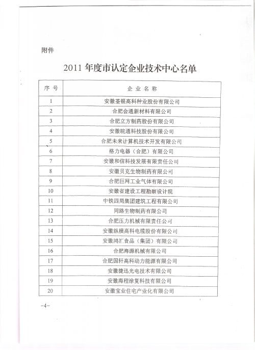 2011年度市認(rèn)定企業(yè)技術(shù)中心名單